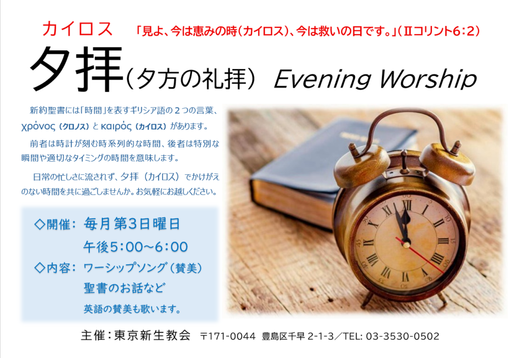 ◆毎月第3日曜日開催の「夕拝」(3/15) のお知らせ