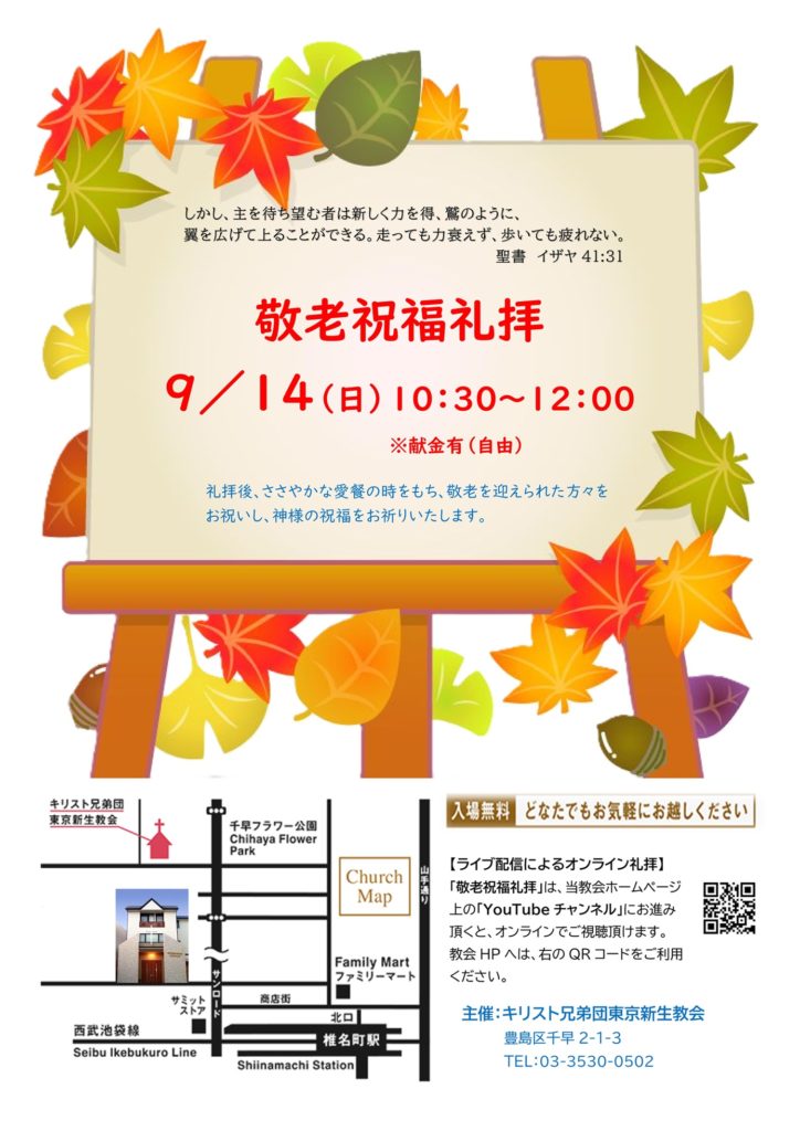 ◇敬老祝福礼拝のお知らせ